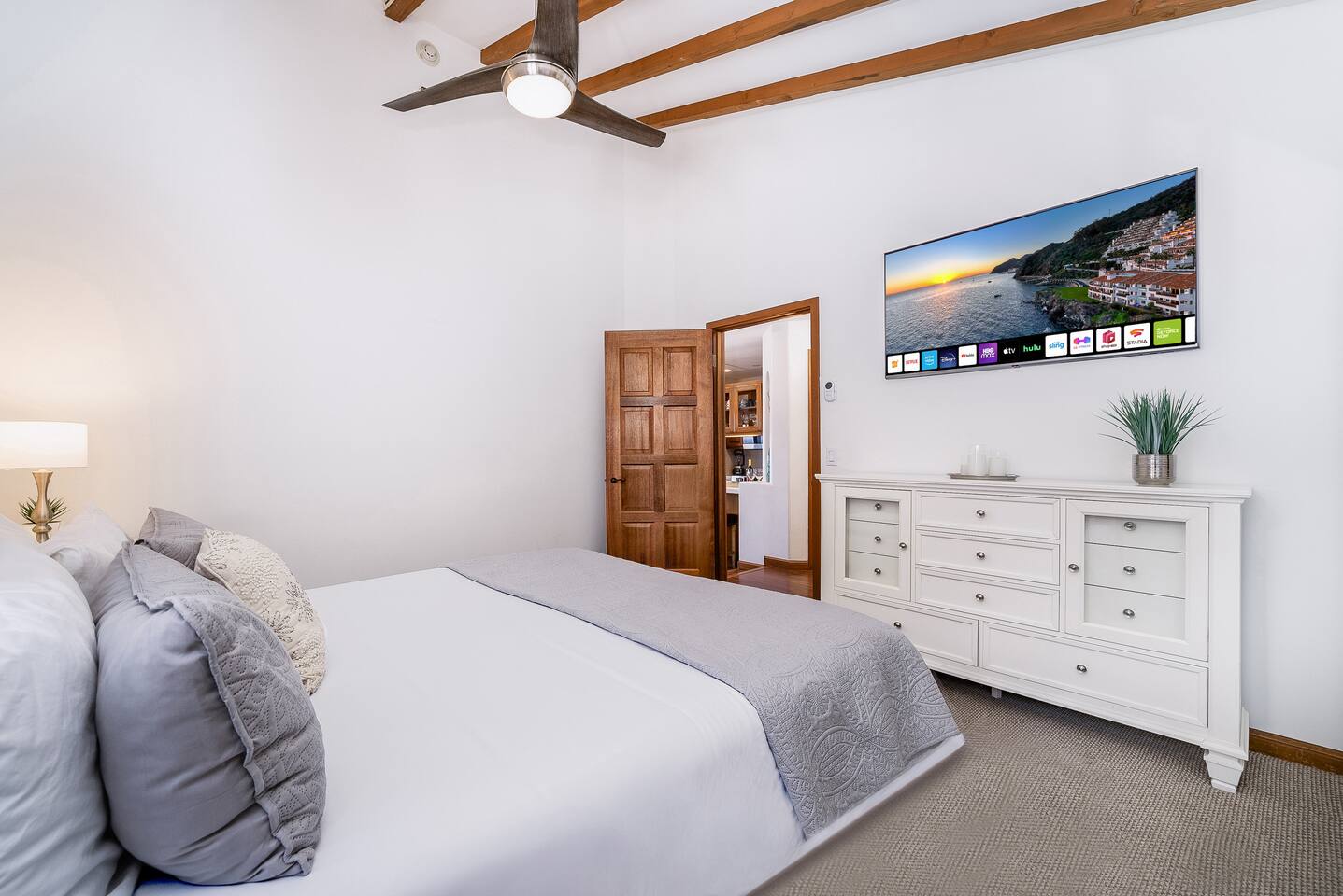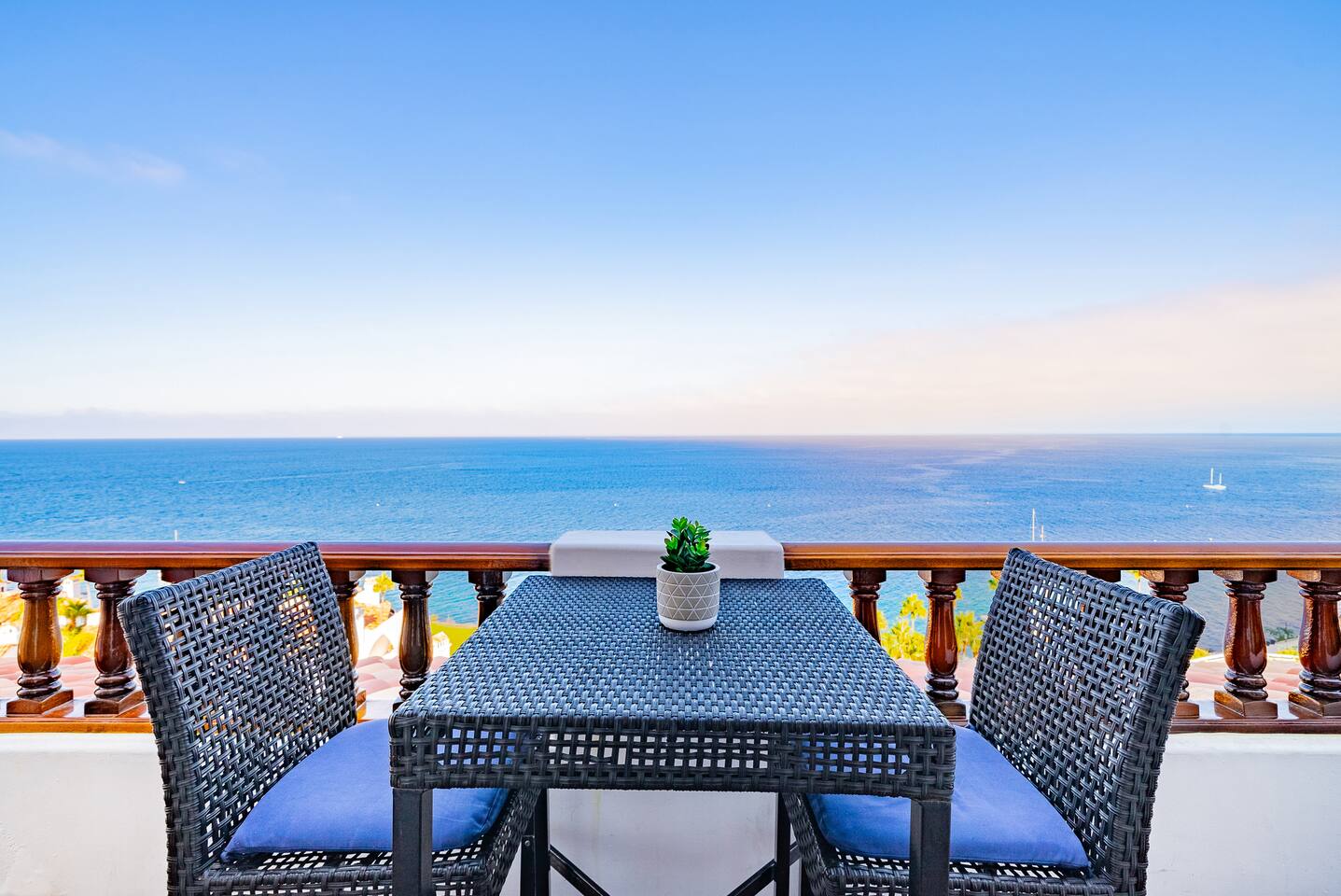 Our condo features a spacious bedroom, large bath with dual sinks, separate shower and tub, and toilet room with separate door. The kitchen overflows to the living room and dining room with bay windows. We also have full sized laundry access very convenient for guests a few feet from our front door. Guest access Guests enjoy the entire condo (bedroom, bath, living room, dining room, and kitchen) plus the laundry. Haven is One of the Highest Rated Properties on Catalina Island Experience what guests rave about in this highly-rated, luxury condo in the exclusive Hamilton Cove community. Our guests consistently tell us they appreciate the exceptional cleanliness and quality of our condo but also the attention to detail we continue to invest into this and how much value we place on being the best hosts we can be. Our spacious 1-bedroom, 1-bath corner condo blends luxury and beach casual vibes with a remodeled interior with unobstructed panoramic ocean views from our large 35-foot balcony. Guests love waking up to the sound of the waves and enjoying their morning coffee with breathtaking, unobstructed views of the ocean. As one of the most sought-after properties, our condo offers a wide array of amenities to ensure an unforgettable experience: resort-style pool, spa, mini golf, tennis courts, and a fitness center. Families and couples alike appreciate the proximity to Hamilton Beach down below, and they love the availability of our continually serviced Yamaha golf cart which can be used to explore the island with ease. Another bonus is that our golf cart dedicated parking space is located at the top of the development and not down below where you would need to walk up many stairs to get back to the condo. It's very convenient! Inside, our condo features a fully stocked kitchen, a comfortable family room, and a beautiful dining area. With two sets of double French doors and extra windows, our place is filled with natural light which really crates an inviting atmosphere. We love how different the condo feels with being located on a corner and having extra windows in both the living room and the bedroom. An added convenience is that we have fewer stairs than many to access the condo. At 21 steps from the top road, getting to and from our place isn't a burden. Our guests also appreciate the convenience of BBQing on the balcony, making it the perfect spot for meals with an incredible view. Just keep an eye on your food if you run inside for something! There are seagulls who will show up very quickly if you step inside and leave food out! Whether you’re here for a romantic getaway, a family vacation, or simply to enjoy the beauty of Catalina Island, this property provides the perfect setting and a level of service our guests continue to rave about! Please check out our reviews and if you have any questions about booking a stay, or special considerations, please drop us a message and we will respond very quickly!